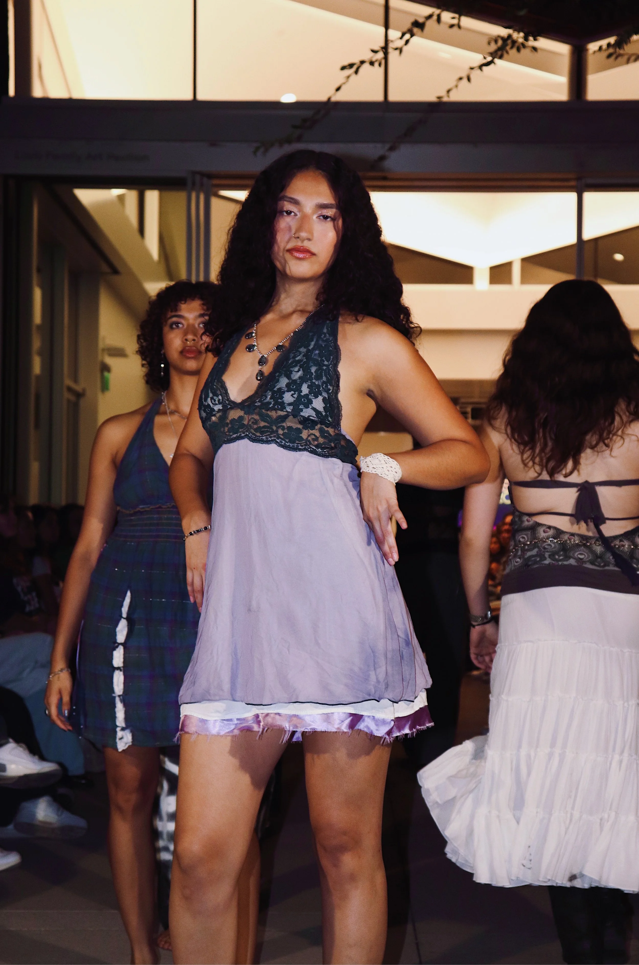 November, 2024. Night is inspired by winter, the darkness of the night, and cool purples, blues, whites, and grays. It features nine looks, and was presented at the Fall Sustainable Fashion Show organized by the Pomona College Sustainability Office.